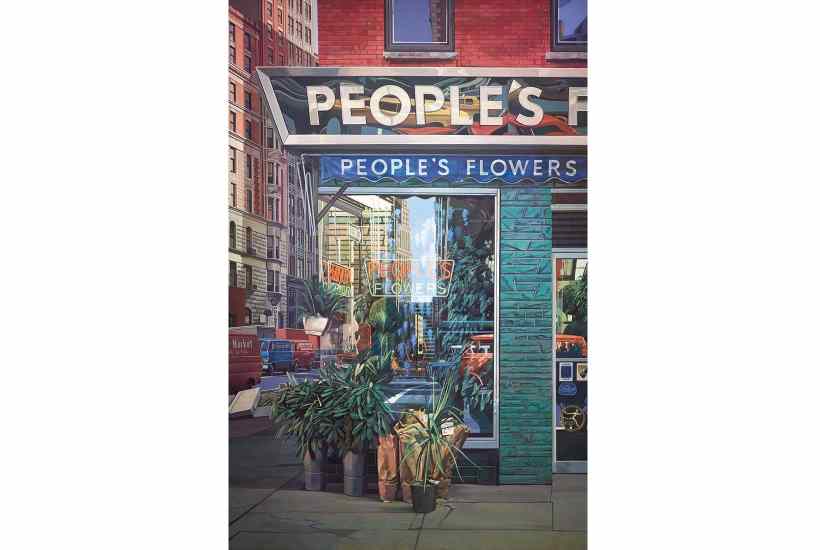 Our high streets, as blank and uninspiring as they’ve become, are not beyond being celebrated in art. Consider the work of Richard Estes. The artist’s paintings of the American equivalent of the high street make even the shabbiest shops uplifting by making their architecture and signage the focus. In ‘Supreme Hardware’ (1974), signs for liquor, ‘supreme hardware’ and dry-cleaners loom over pavements piled with cardboard boxes for refuse collection. ‘Lunch Specials’ (2001) shows a bagel shop — croissants, muffins, deli also available — with a queue of people waiting to order. The door is jammed wide open across the gum-spattered sidewalk. As in many of Estes’s paintings, the picture plane is split vertically, so we see both inside the shop, and out.