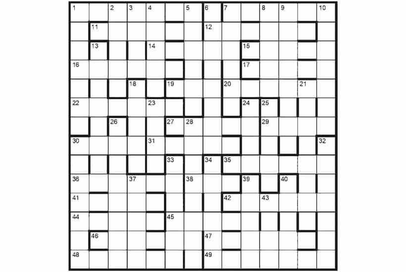 Unclued lights are nine words taken from a poem whose first three words (as quoted in ODQ) will appear in the completed grid. The poet’s surname is a clued light and must be shaded. Surplus words in six clues are more words from the poem.