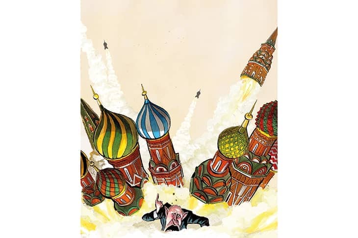 What about sanctions? Boris Johnson has promised that the latest package of unprecedentedly savage economic measures will ‘squeeze Russia from the global economy, piece by piece’. Nonetheless it is far from clear just how sanctions will change Putin’s mind, much less topple him from power. Sanctions are the modern world’s equivalent of a medieval siege, intended to starve the enemy into submission. The severity of the latest measures – which have cut the Russian Central Bank off from most of its $630 billion foreign currency reserves and disconnected 80 per cent of Russia’s banking sector from the US financial system – have shown impressive resolve and unity among the international community. They have also successfully sent the Russian rouble and stock market into free fall. Even former Putin sympathisers Germany and Hungary have come on board with sanctions that put Russia on a par with pariah states such as Syria, North Korea and Iran.