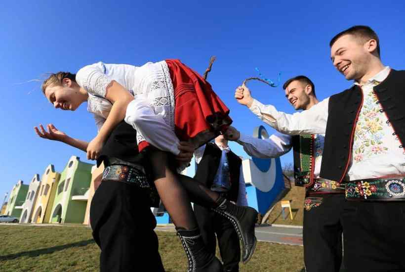 On the morning of Easter Monday, young men across rural Slovakia and the Czech Republic go through their neighbourhood gently flogging women on the buttocks with a whip made from willow twigs and colourful ribbons. The medieval practice, which was probably originally pagan, came from the belief that the vitality from the twigs in the whip would flow into the woman’s body, bringing good health, beauty and fertility. In Czech, the whip is called a pomlázka, which is derived from the word pomladit, meaning ‘to make younger’. In some regions, the men receive a hand-painted egg or a coin or a shot of vodka or plum brandy as a ‘thank you’ for the whipping. The women receive a bucket of cold water to the face. ‘Women hate Easter, men love it,’ Zuzana Beňušková, a social anthropologist, told the Slovak Spectator (no connection). ‘But on the other hand, women brag the following day about the number of visits they had.’