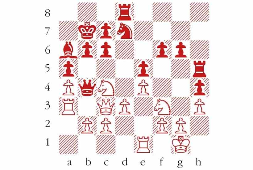 White to play. Duda-Anton Guijarro, Charity Cup, March 2022. Black’s last move, 21…Qe7-b4 was an unforced error. Which move did White play to exploit it? Email answers to chess@spectator.co.uk by Monday 11 April. There is a prize of £20 for the first correct answer out of a hat. Please include a postal address and allow six weeks for prize delivery.