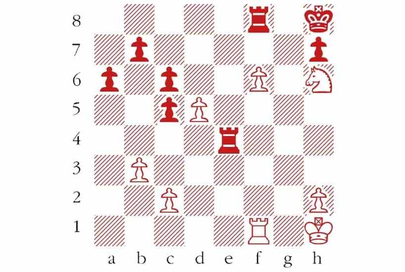 White to play. A variation from Esipenko-Nakamura, Fide Grand Prix Berlin 2022. Which move would allow White to force a win? Email answers to chess@spectator.co.uk by Monday 18 April. There is a prize of £20 for the first correct answer out of a hat. Please include a postal address and allow six weeks for prize delivery.