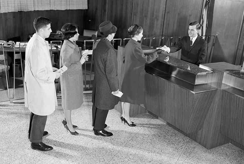 She was called Nancy and she was American. I really liked Nancy. It made my banking transactions slightly more palatable to be able to walk up to the counter and get Nancy, always smiling, always patient. Nancy is gone now. They kept some other miserable-looking women to stand by the machines, but not Nancy. Or maybe Nancy took the view that she didn’t want any part in this new-look self-service branch, with its horrible shiny surfaces and its glass-fronted offices, where lounging employees of the bank can clearly be seen having leisurely luncheons and frothy coffees, while the customers struggle with the machines and only one assistant ever stands by to help.