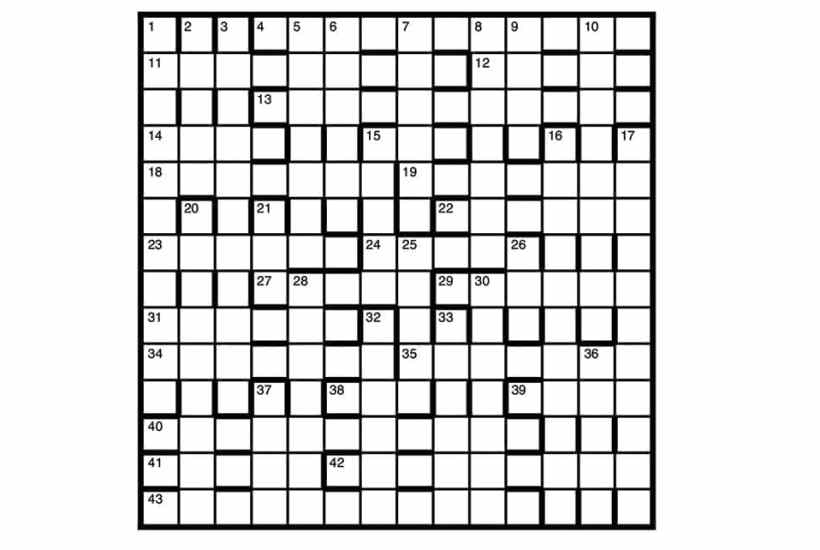 A first prize of £30 for the first correct solution opened on 30 May. There are two runners-up prizes of £20. Please scan or photograph entries and email them (including the crossword number in the subject field) to crosswords@spectator.co.uk – the dictionary prize is not available. We will accept postal entries again at some point.