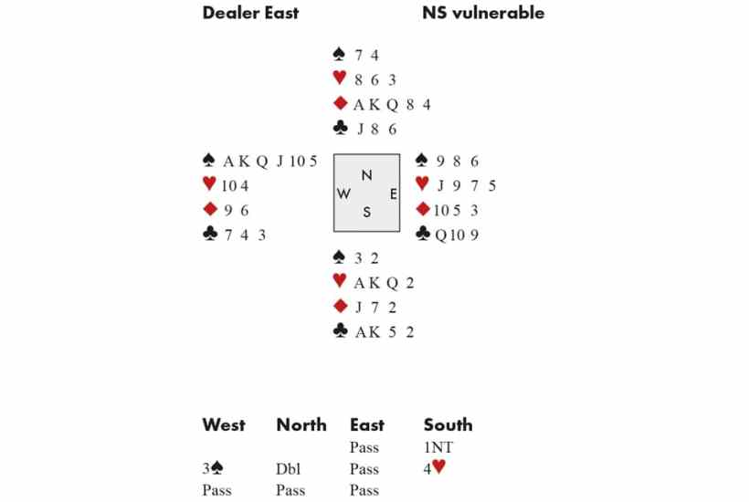 Sitting West, I cashed the ♠AK, then switched to a club. Had Seligman now cashed three top trumps and then played on diamonds, the contract would fail: East would ruff the fourth and play a spade, stranding him from dummy and leaving him with a club loser. To cater for a 4-2 trump break, Seligman’s neat solution at trick 4 was to play the ♥2 from hand. I won and played another club, but Seligman was now able to draw the remaining trumps and claim.