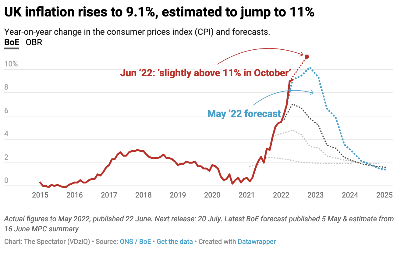 We learned today that inflation has nudged up again, this time well past the 9 per cent barrier. The Bank of England is already forecasting it might go above 11 per cent, and given how cloudy its crystal ball is – only a few months ago it was arguing inflation was just a blip – it might well climb a lot higher than that. Real wages are falling at the fastest rate in a generation, and living standards are getting squeezed.