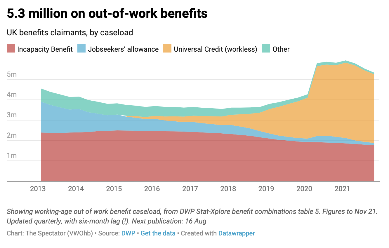 All this is compounded by one of the biggest unspoken facts of UK politics right now: there are more than five million people missing from the workforce: on out-of-work benefits and most of them not included in unemployment figures because they are not seeking work.