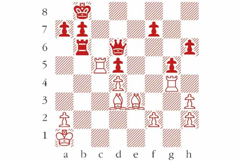White to play. Giri-Praggnanandhaa, Chessable Masters 2022. A game from the preliminary stages. What did Giri play to induce resignation? Answers should be emailed to chess@spectator.co.uk by Monday 6 June. There is a prize of £20 for the first correct answer out of a hat. Please include a postal address and allow six weeks for prize delivery.