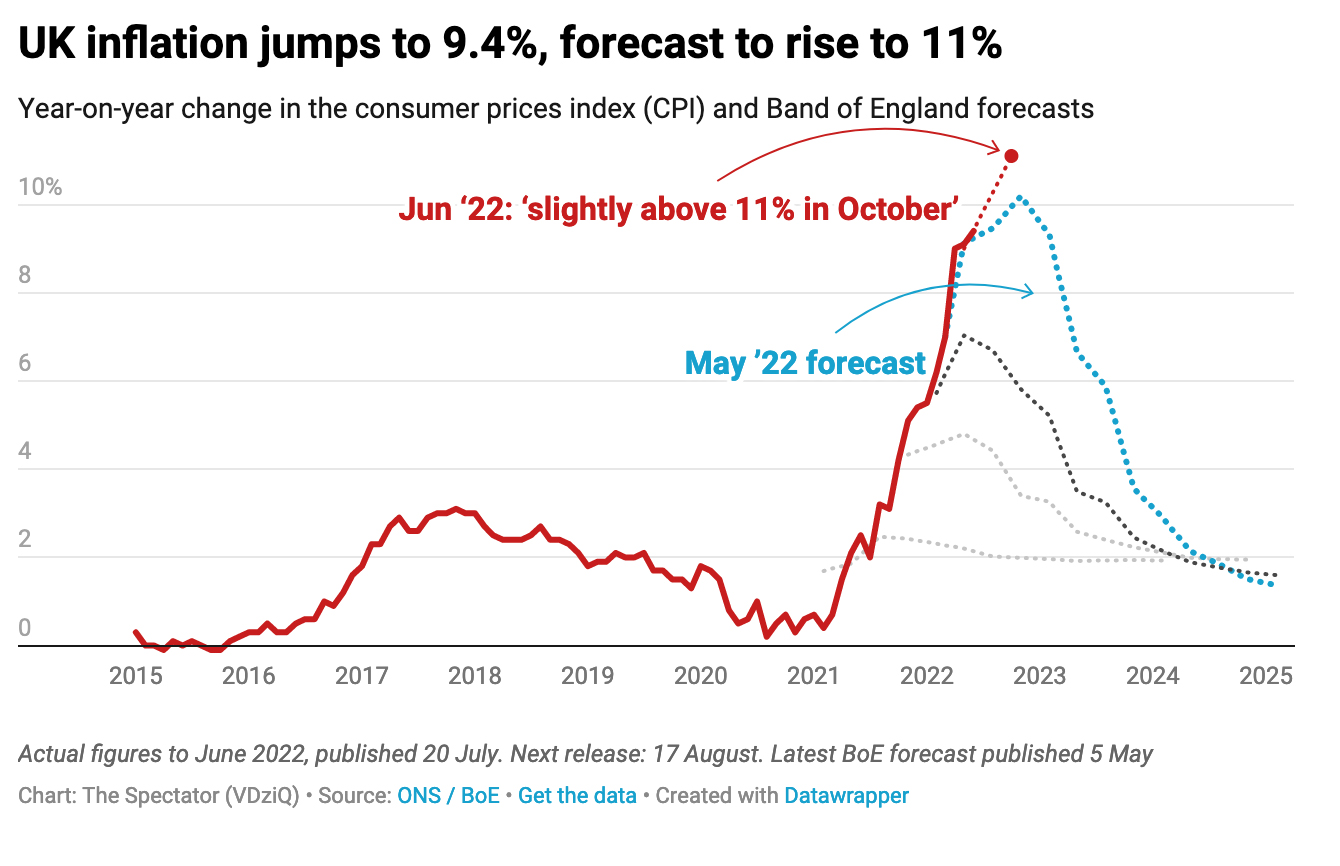 Tonight’s interview also raised questions about the difference between shifting circumstances and outright u-turns. Neil suggested that on windfall taxes and energy VAT cuts, Sunak’s tax strategy fell firmly in the latter camp. But Sunak insisted that these changes in policy occurred only when new circumstances arose – including how long oil and gas companies would benefit from higher profits, and how much energy bills might rise this autumn. It was notable that Sunak described the VAT cut on energy bills as one of the ’only lever(s) left’ to pull to help with that specific area of the cost-of-living crunch: a reminder of the limited options politicians have when it’s the Bank of England that controls interest rates and can do the most to curb inflation.