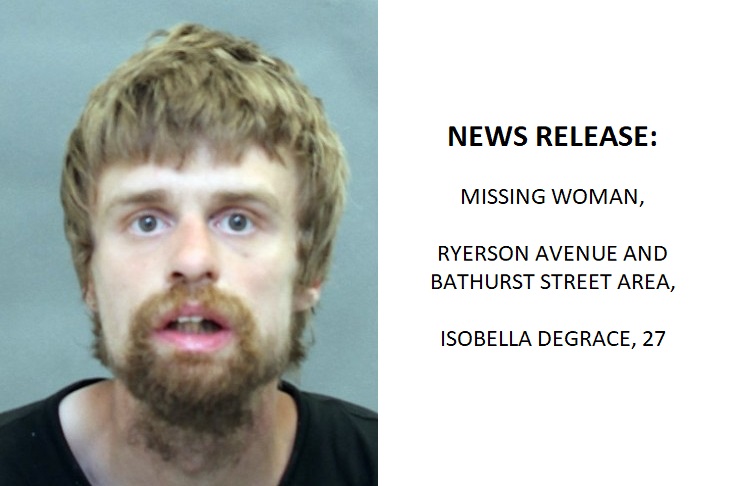 News Release – Missing Woman, Ryerson Avenue and Bathurst Street area, Isobella Degrace, 27https://t.co/JB42sCtzxY pic.twitter.com/SO1VNr16NY