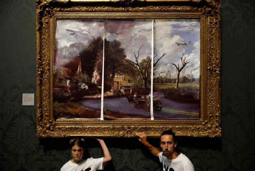 On Monday eco-protesters glued themselves to the frame of Constable’s painting The Hay Wain and covered it with an altered version of their own, doing minor damage in the process. On Saturday, eco-protesters rushed onto the track at Silverstone. Last Friday, eco-protesters glued themselves to a Turner painting in Manchester. Earlier in June, eco-protesters… you get the idea.