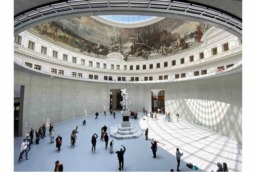 Pinault has been somewhat more frugal. Having secured the Bourse on a favourable 50-year lease from the mayor, he has spent a footling £150 million on restoring and transforming its great circular chamber, inspired by the Pantheon in Rome, into exhibition space. Inside its inner perimeter, the Japanese architect Tadao Ando has built a circular wall in perforated concrete, ‘like a thin fruit peel’. The galleries run over several levels in side rooms around the central floor. It is all very white, spare and cool.