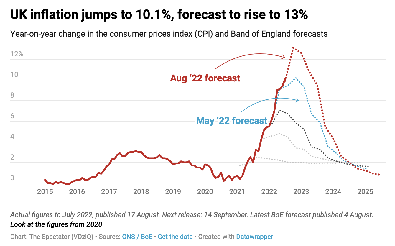 That today’s inflation figures would come as an immense shock to anyone who has returned from a year in the wilderness goes without saying. A little over a year ago, in May 2021, the Bank of England was predicting that the Consumer Prices Index (CPI) would peak at no higher than its two percent target. CPI is now in double figures for the first time in 40 years, at 10.1 per cent – exceeding even the already-grim expectations of many economists. The Bank of England may yet again have to revise its forecast for the inflationary peak – which just two weeks ago it put at 13 per cent. The Bank’s Monetary Policy Committee has been asleep on the job and it is a wonder that its governor, Andrew Bailey, is still in his job.