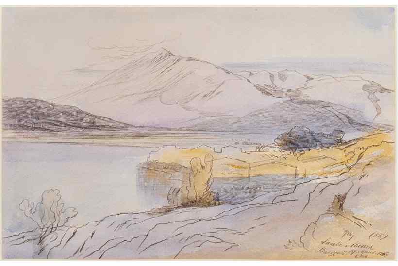 Not many people think of the author of ‘The Owl and the Pussy-Cat’ as an artist, but it was as an artist that he thought of himself. Self-confessedly ‘half-educated’ – he lasted a year at school, which he hated – he began drawing ‘for bread and cheese’ in his teens, teaching himself from his sisters’ ladies’ drawing manuals. Having caught the travel bug, he became a frantic collector of views – in a 50-year career he amassed 9,000 sketches, some providing reference for later paintings but most merely scratching the itch to capture the moment. When a fellow traveller suggested accompanying him on an outing, he was warned off by Lear’s faithful servant Giorgio, who compared his master to a hunting dog. He would prowl around a subject, catching it from different angles and in different lights, registering the creep of shadows as the sun rose and set. Drawing in pencil to go over later in ink and wash made him very quick.