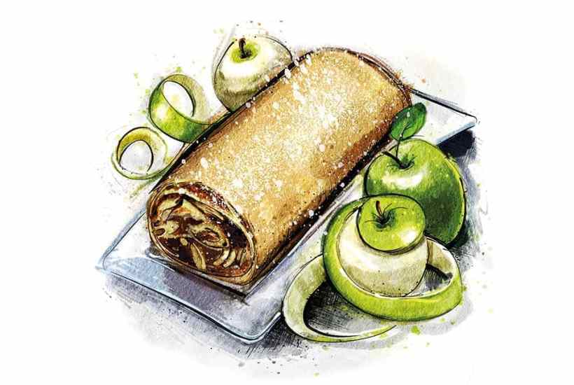 Whole, an apple strudel can, I’m afraid, look a bit nondescript: a big, bulky, beige log. But dusted with icing sugar and sliced through to reveal its whirlpool-like cross-section, packed with apple slices, buttery crumbs and fat raisins, it is a thing of beauty. It should have enough structural integrity to slice cleanly and stand up on its own. Strudel is best warm, rather than very hot, straight from the oven, and will sit happily alongside custard, cream or ice cream. It might not be big or clever, but I prefer it with a generous splodge of squirty cream from a can.
