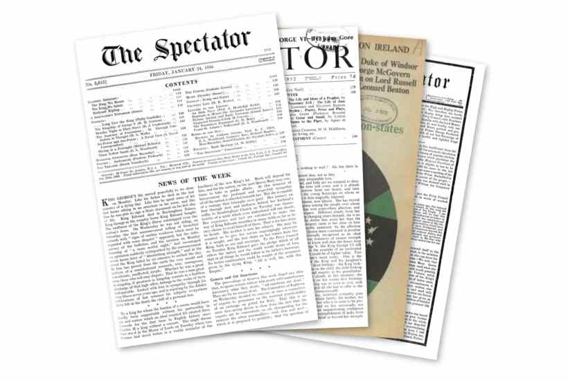 On 24 January 1936, King George V died. The Spectator marked his death by comparing George to his predecessor: ‘Like his father he died in the last minutes of a dying day. Like him he spent some of his last hours sitting in an armchair in his room, and like him he was able to sign a State document on his last day of life.’