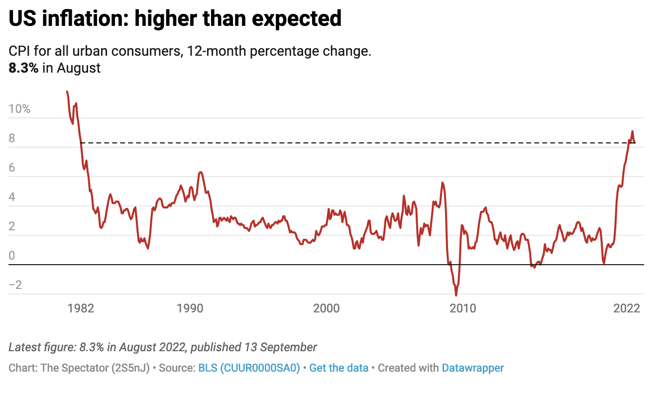 The inflation numbers out of the US today are, once again, alarming. Instead of the minor but steady fall most economists were forecasting, the headline CPI rate has risen by 0.1 to 8.3 per cent, while the core rate, which excludes volatile fuel and energy prices, was up by 6.3 per cent. Those are worrying numbers. With global commodity prices falling back, and with the Federal Reserve steadily increasing interest rates, inflation should be coming back under control by now – not going back up again.