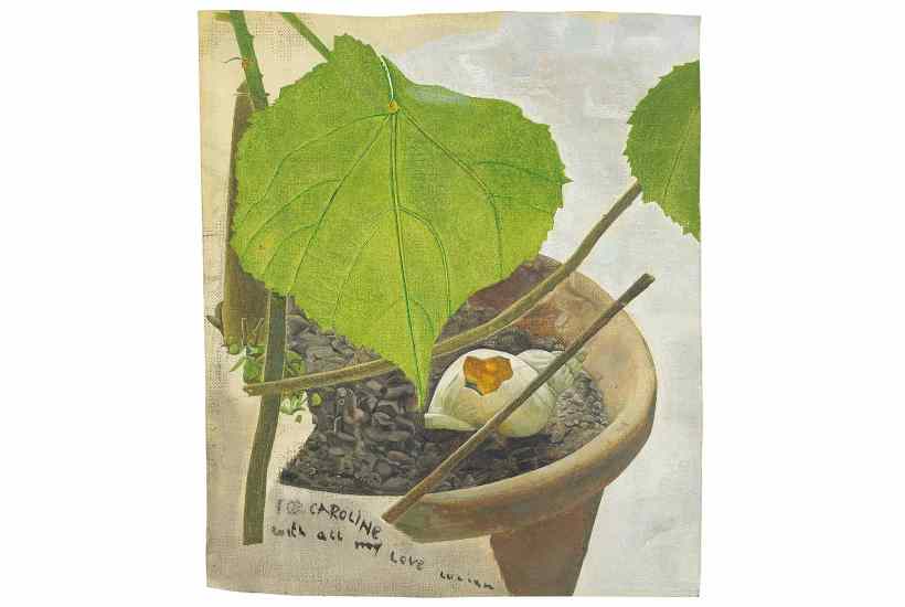 For a genuinely new perspective on Freud, visit the Garden Museum’s exhibition of Plant Portraits. The hands of ‘Bananas’ (1953) he studied in Jamaica; the ‘Unripe Tangerine’ (1946) he picked in Greece; the ‘Gorse Sprig’ (1944) he scrutinised in Sussex, with new buds and dead needles on the same stem: all are portrayed as distinct characters shaped by their individual experiences of life. The influence of Dürer’s ‘Large Piece of Turf’, of which a print hung in the family flat in Berlin, is visible in a 1993 etching of daisies and plantain sprouting on a patch of turf lovingly brought back from Tuscany. The lusciously painted hollyhock and foxglove in ‘Flowers on a Red Chair’ (1998) are not sprawled or splayed across the seat, but delicately placed. If he hadn’t succumbed to the pleasures of painted flesh, Freud might be remembered as a very different artist.