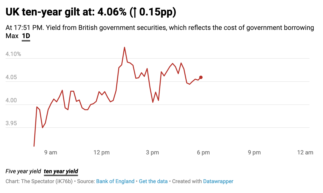And Johnson is in the spotlight. As his odds to be the next leader narrowed substantially today, the cost of borrowing rose, with 10-year gilt yields rising back over 4 per cent in almost real-time, following the news. It is of course impossible to say that this is directly (and only) down to the news about a possible Johnson return. But not only does there seem to be a link, it raises an important point about the former prime minister’s return: will the markets tolerate Johnson’s economic philosophy of ‘cakeism’, promising the world to voters in terms of tax cuts and spending hikes, unwilling to make the trade-offs? In these new economic times, it’s likely they would not.