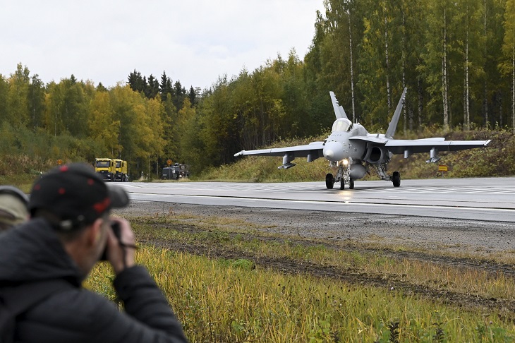 ‘Mainly I imagine all of the highway bases are in fairly good situation so simply taken into the operations in a few days,’ said Colonel Vesa Mantyla, head of the Finnish Air Force. He added, ‘The menace from Russia or the actions from Russia with the cruise missiles and ballistic missiles proves that the idea of dispersed operations is true.’