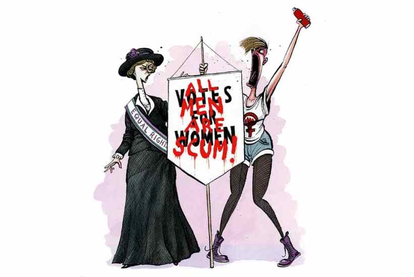 Some feminists have taken to calling the black-clad activists ‘the Black Pampers’, which just about sums up the phenomenon. What we’re really seeing here, both online and offline, is teenage boys screaming in the faces of women their mums’ age. Mothers – and the hatred of them – are at the centre of the action.