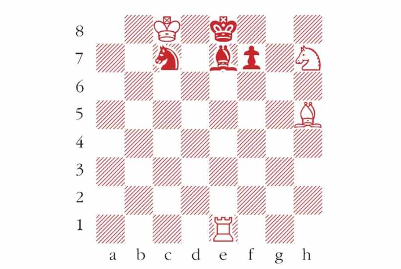 White to play and mate in two. Composed by Bruce Leverett, Chess Life, 1968. What is White’s first move? Answers should be emailed to chess@spectator.co.ukby Monday 17 October. There is a prize of £20 for the first correct answer out of a hat. Please include a postal address and allow six weeks for prize delivery.