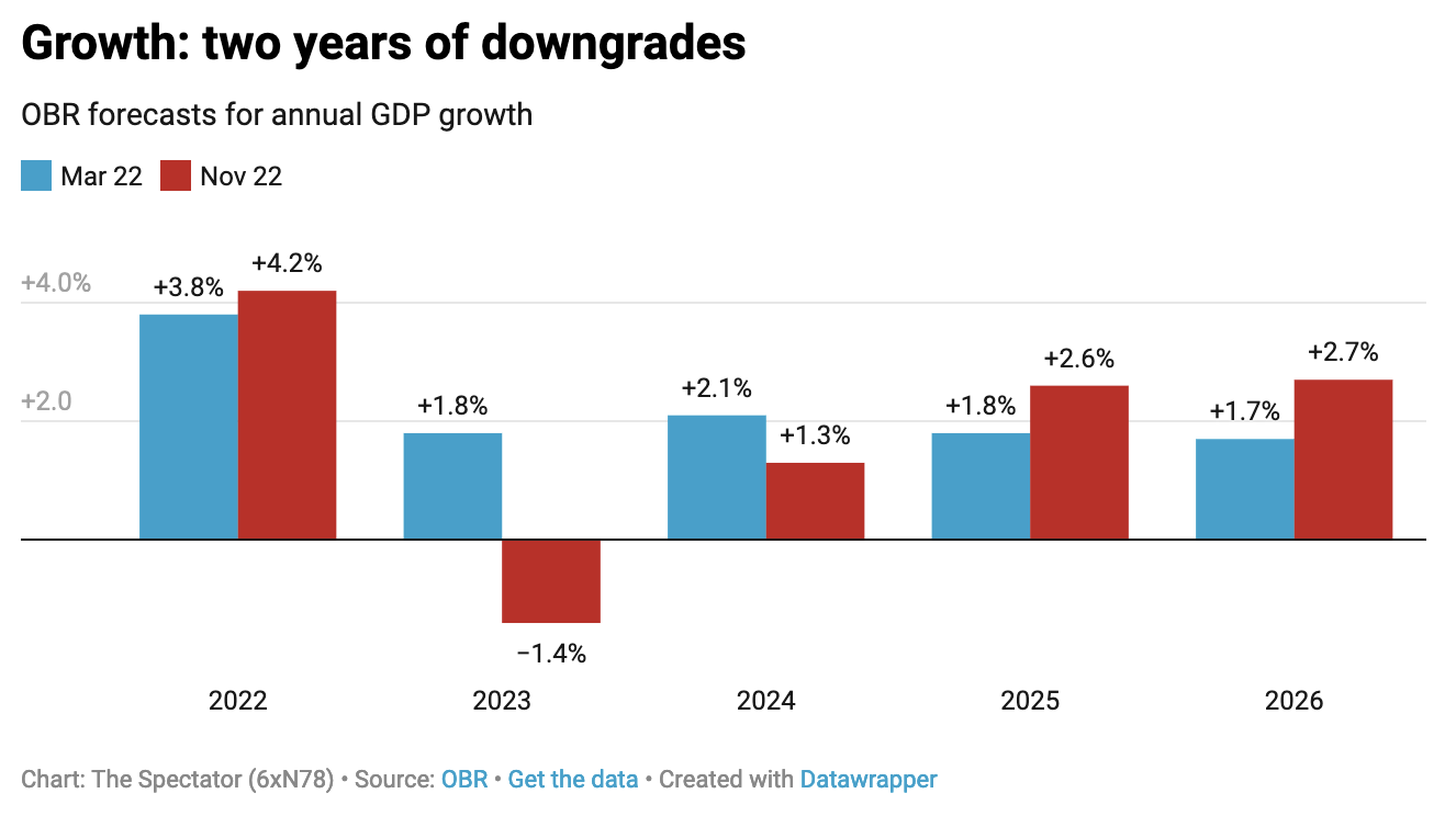 As I write in this week’s magazine, Sunak’s time in No. 11 suggests he is well aware of the need for reform: he knows that simply throwing more money at failing services guarantees further tax rises. But today’s statement pushes those decisions into the future, focusing more heavily on getting the government’s fiscal rules back on track. On that measure they have succeed – but it’s come at an extremely high price.