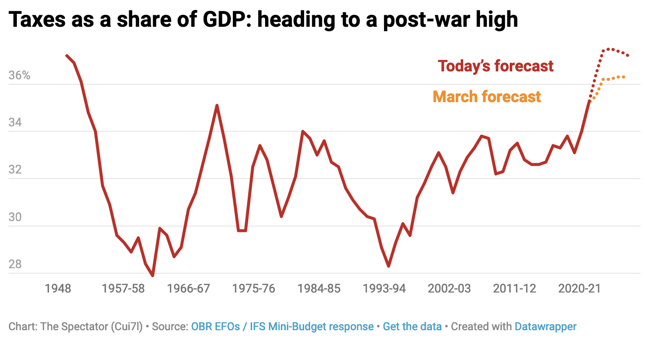 The post Jeremy Hunt takes the tax burden to post-war high appeared first on The Spectator.