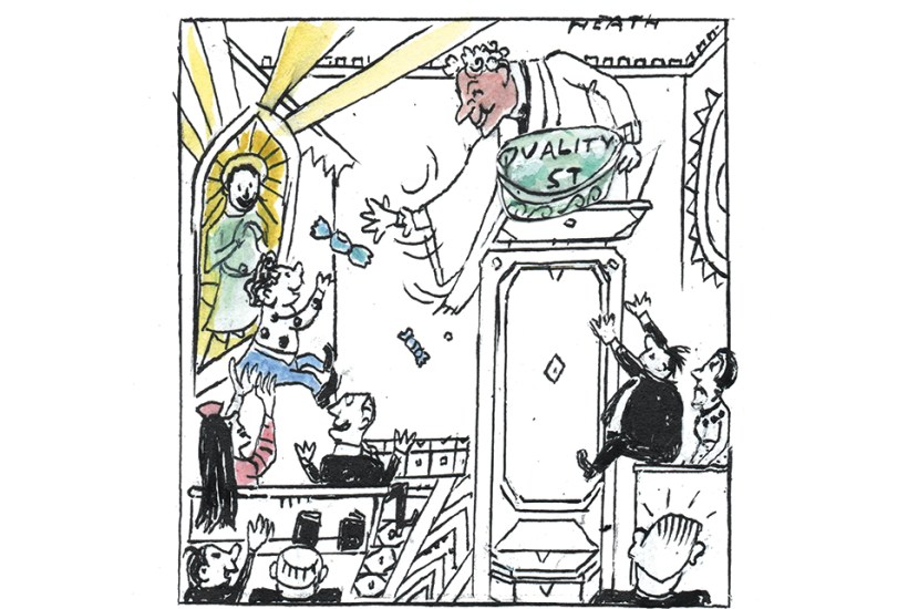 I write this with two violet candles lit on the Advent wreath. The next will be pink for Gaudete Sunday and our vicar will wear a chasuble embroidered with roses. This is more subtle than the vestments worn by Bill Scott, the flamboyant late vicar of the very high St Mary’s Bourne Street in Pimlico, who used to serve his flock kir royale after mass. One Gaudete Sunday, I saw Scott ascend to the pulpit wearing a cerise creation with gold trim and begin his sermon by saying: ‘This is the time of year when I like to dress up as a Quality Street.’