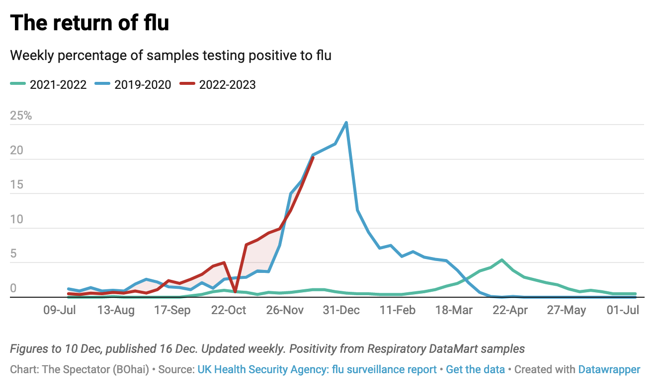 Could flu really kill 30,000 people in Britain this year as our immune systems, rendered naïve after two years of lockdowns and other anti-Covid measures, are over-ridden by the virus? That suggestion has been reported in places this morning.
