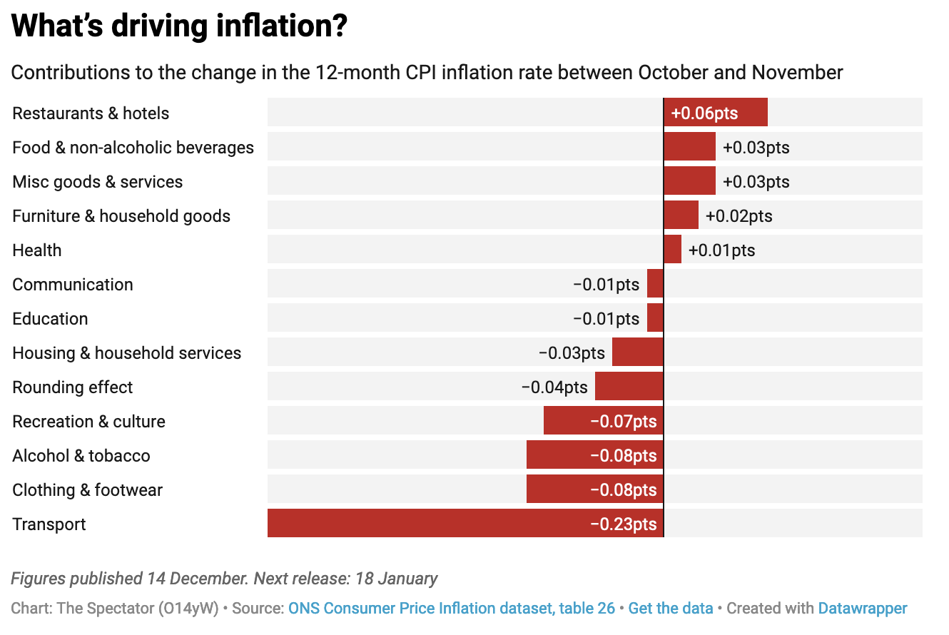 A cold December, too, will be make people feel poorer. Gas and electricity bills for this month will be rising more than the energy element of the CPI might suggest because people will be forced to use more energy.