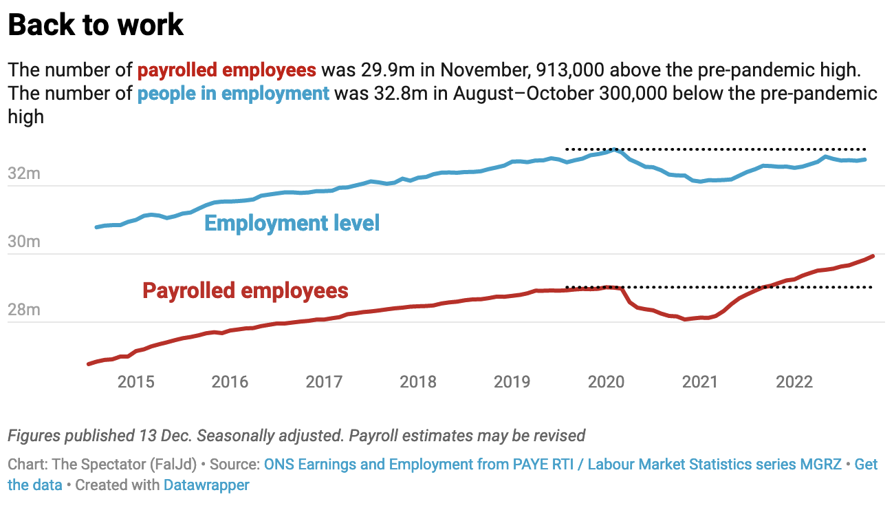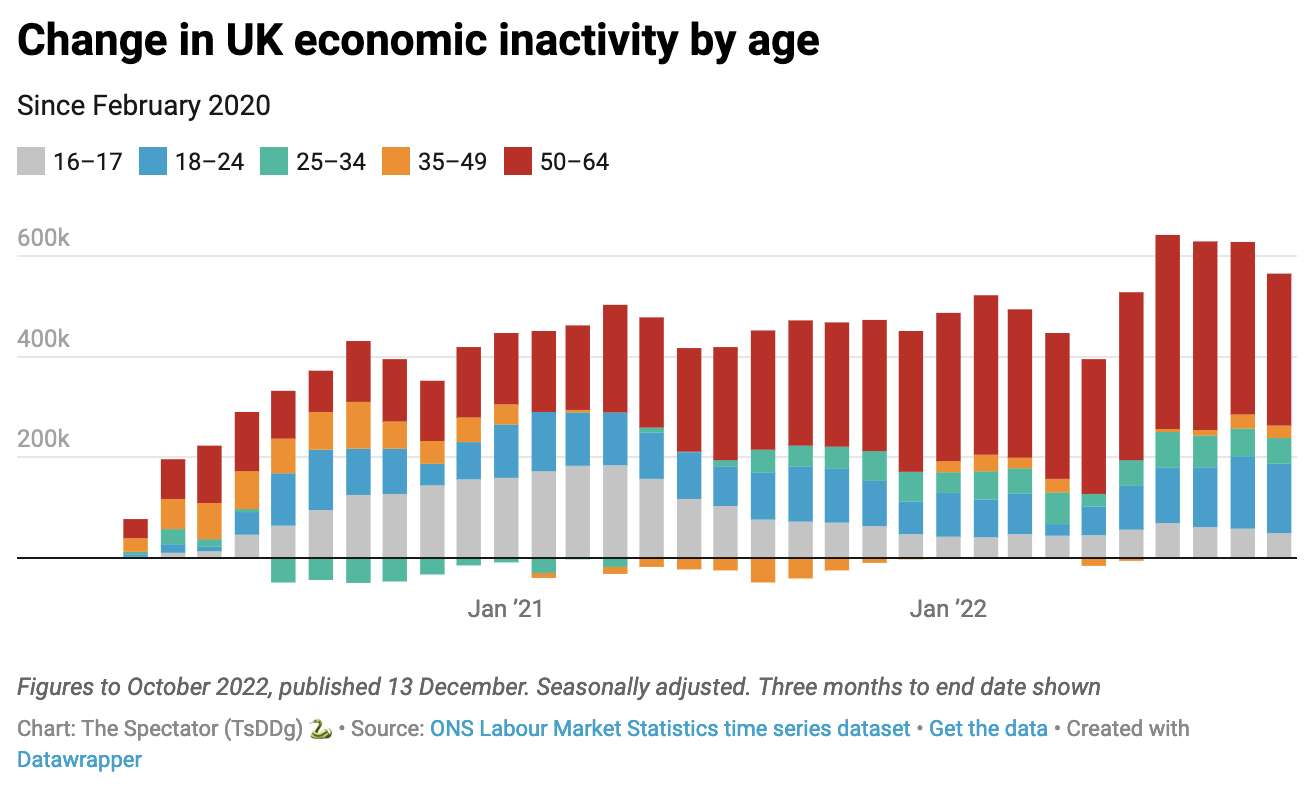 Figures released by the Office for National Statistics this morning reveal that even though unemployment is up, ‘economic inactivity’ is starting to fall, having previously grown by some 565,000 people since the pandemic and lockdowns. A city of workers the size of Manchester had stopped working and weren’t looking for jobs either, meaning they weren’t counted in the official unemployment figures. But this trend away from work might be beginning to reverse.
