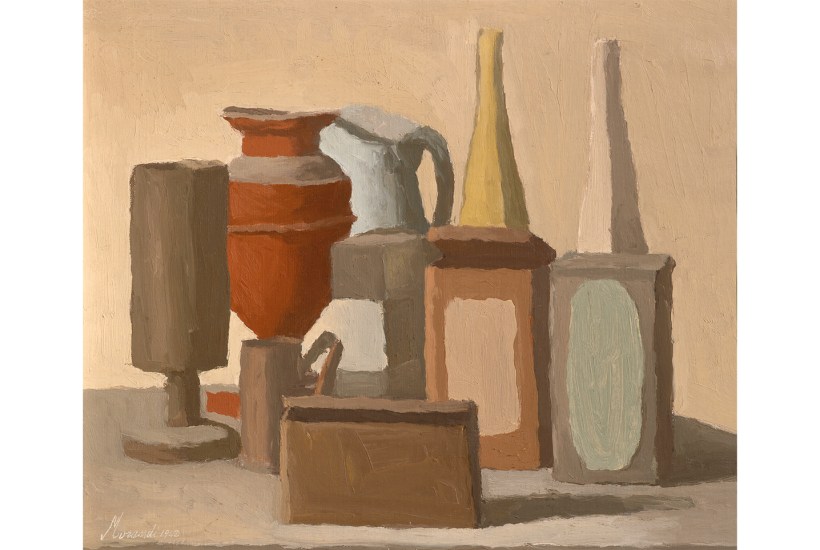 A mannequin in an early ‘Metaphysical Still Life’ of 1918 betrays the influence of Giorgio de Chirico he would later deny. The aim of pittura metafisica, as de Chirico saw it, was ‘to see the ordinary in an extraordinary way’ but Morandi found the ordinary quite interesting enough without lumbering it with metaphysical meanings. From the domestic objects arranged in rows or huddled on his tabletops he created miniature skylines, built environments he could contemplate from bed. ‘Even a still life is architecture,’ he said.