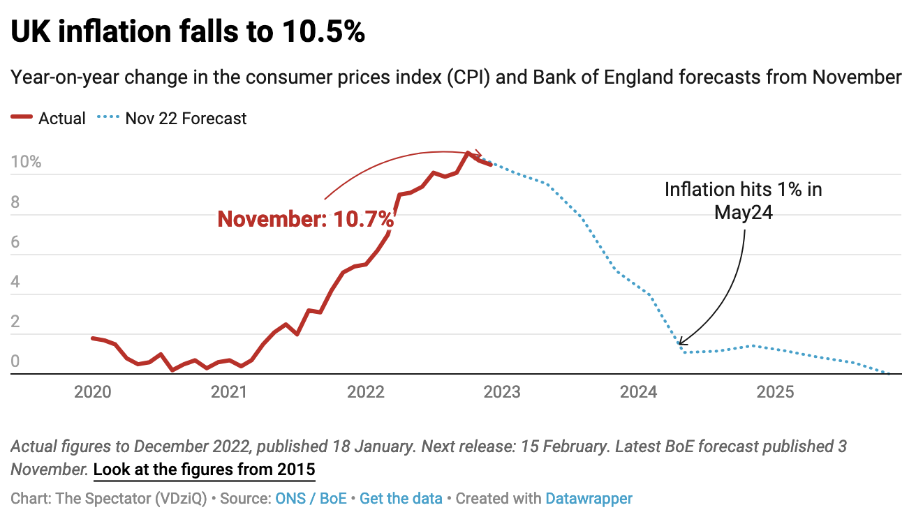 Today’s CPI figure will do little to shift expectations for interest rates, which most believe have yet to reach their peak. But by the middle of the year we ought to be in a very different place, with inflation falling sharply and the threat of further interest rate rises removed.