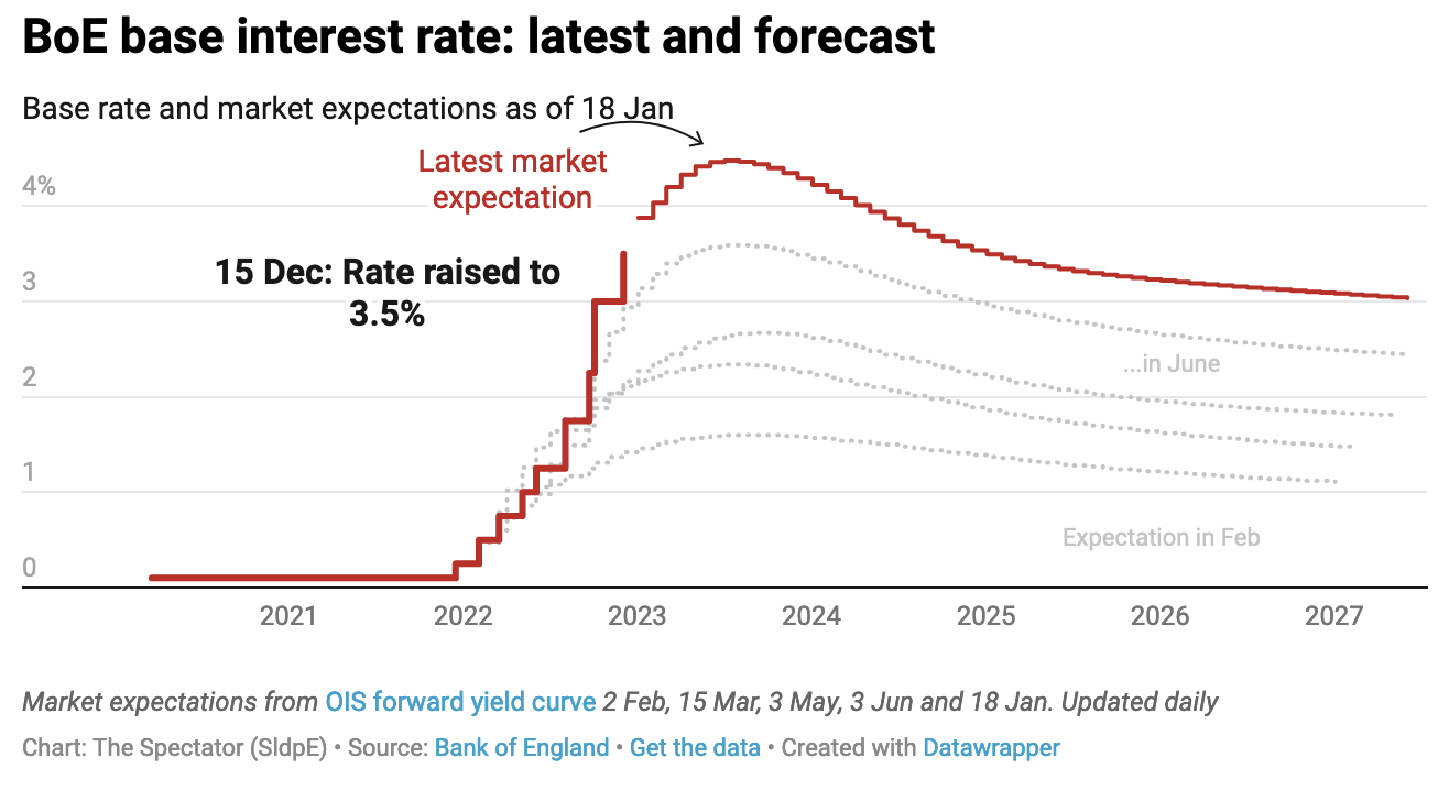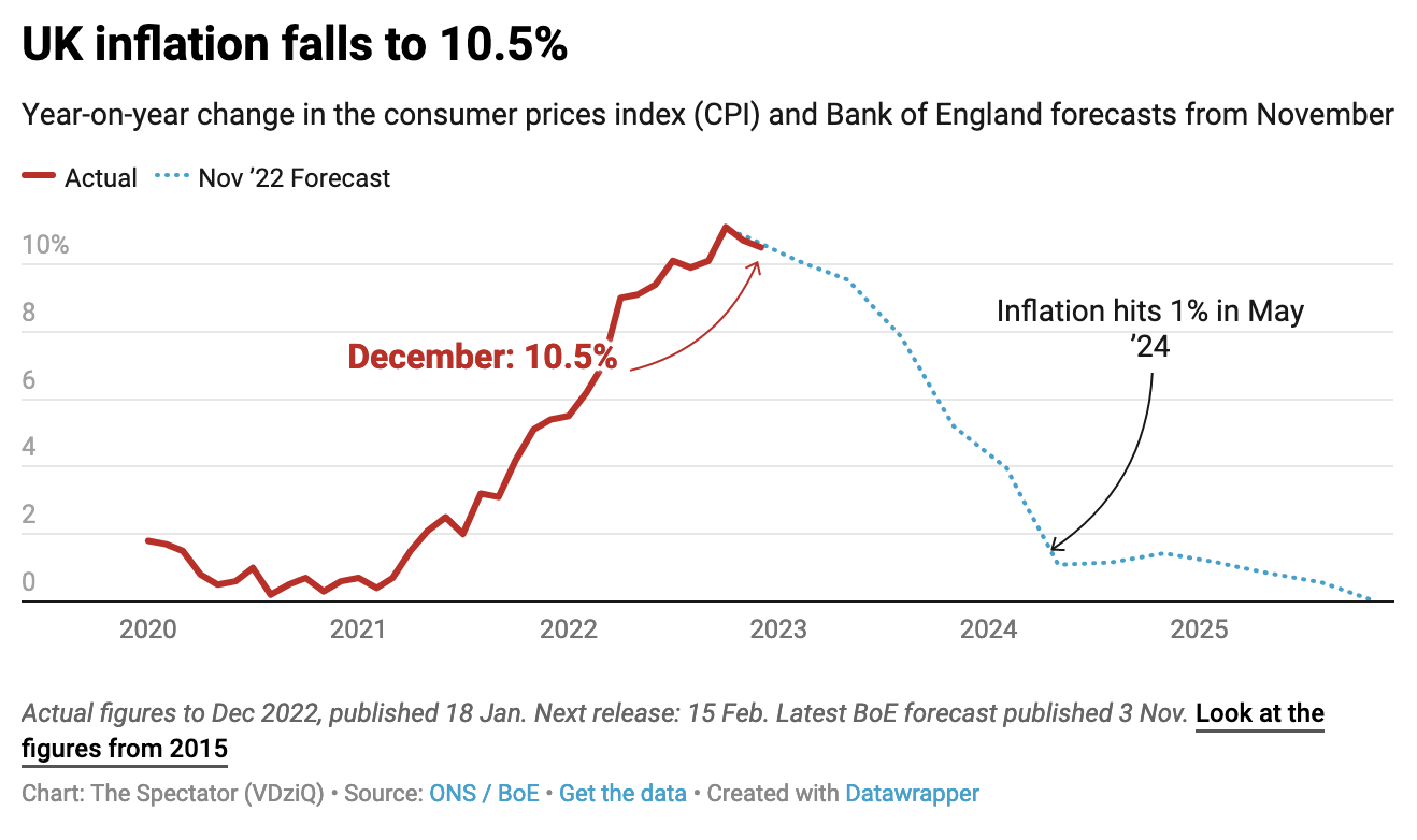 Bailey, ever the optimist, has a bad track record on these kinds of predictions. Having insisted for the better part of 2021 that inflation would simply be ‘transitory’, he and the Bank underestimated price hikes at almost turn, always playing catch-up with interest rate hikes. But while the double-digit inflation rate is, in part, Bailey’s responsibility, his predictions for inflation are now backed up by other major institutions. The Office for Budget Responsibility, the CBI, and indeed the government are saying the same – the latter is so confident about inflation coming down that Rishi Sunak and Jeremy Hunt are actually trying to take credit for it, despite the headline rate so largely out of their control.