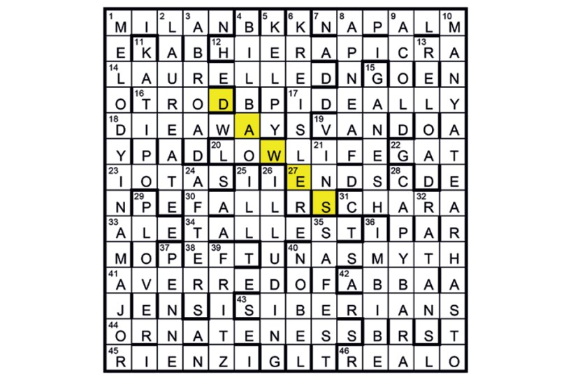 ‘MANY A TEAR HAS TO FALL’ (10/30) is the first line of It’s All in the Game whose tune, originally called ‘MELODY IN A MAJOR’ (1D), was composed by Charles G. Dawes, a future NOBEL LAUREATE (40D/2) and was often played by FRITZ KREISLER (30/6). TALLEST (34): It’s ALL in the game (TEST). DAWES (diagonally from row 4) was to be shaded.