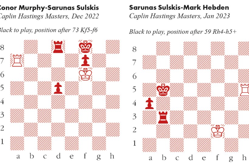 Sulskis began with a crafty sidestep: 73…Kg8! If 74 Rxf7 Rd6+ 75 Ke7 Rd7+ 76 Kxd7 Kxf7 and the d-pawn is unstoppable. So: 74 Ke7 Rb8 75 Ra4? The decisive error. Back-pedalling with 75 Kf6! was necessary. After 75…Rb6+ 76 Ke5 Black must jettison the d-pawn, as 76…Rb5 77 Kf6 d4 78 Ra8+ draws comfortably. A better try is 75…Rb6+ 76 Ke5 Re6+ 77 Kxd5 Kg7, but the endgame is drawn. The simplest method is to harrass Black’s king and pawn from the front, beginning with 78 Ra1. Rb6! Cordoning off the White king. 76 Rg4+ Rg6 77 Rd4 Re6+ 78 Kd7 Re4 79 Rxd5 Kg7 80 Kd6 Kg6 81 Rd1 f5 White’s wayward king means that an exchange of rooks is out of the question, so the pawn cannot be stopped. 82 Rg1+ Kf6 83 Kd5 Rg4 84 Re1 Ra4 85 Rg1 f4 86 Rg8 Kf5 87 Rf8+ Kg4 88 Ke5 f3 White resigns