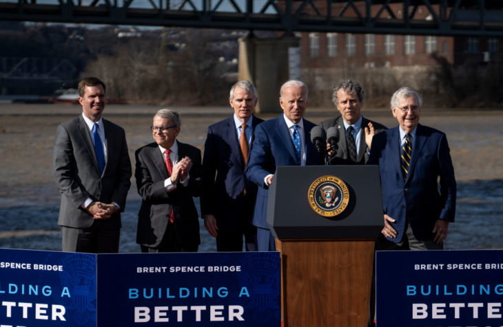 “He’s a man of his word,” the president told the crowd at the Brent Spence Bridge. “When he gives you his word, you can take it to the bank, you can count on it, and he’s willing to find common ground to get things done for the country. So thank you, Mitch. Thank you.”