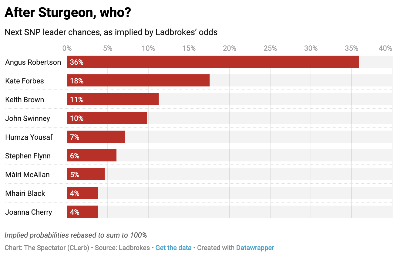 Nicola Sturgeon has confirmed her ‘intention’ to resign as First Minister, staying in office until her successor is elected. She said she had been wrestling with the decision for ‘some weeks’.