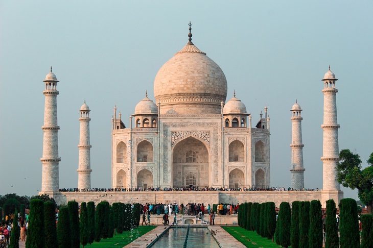 Nothing prepares you for the Taj Mahal. I saw it in early January, when the temperature in Agra gets down to single figures. It emerges from the morning’s mist, silvered by the struggling sunlight, quite literally taking my breath away. With its perfect symmetry, and minarets at its four corners leaning slightly outwards so as they don’t collapse onto the towering dome in the event of an earthquake, it is probably the most beautiful building I have ever seen. It was built in the 1630s by the Mogul Emperor Shah Jahan, as a mausoleum for an adored wife. The Nobel laureate, Bengali poet Rabindranath Tagore, called it ‘a teardrop on the cheek of time’, and was on the money.