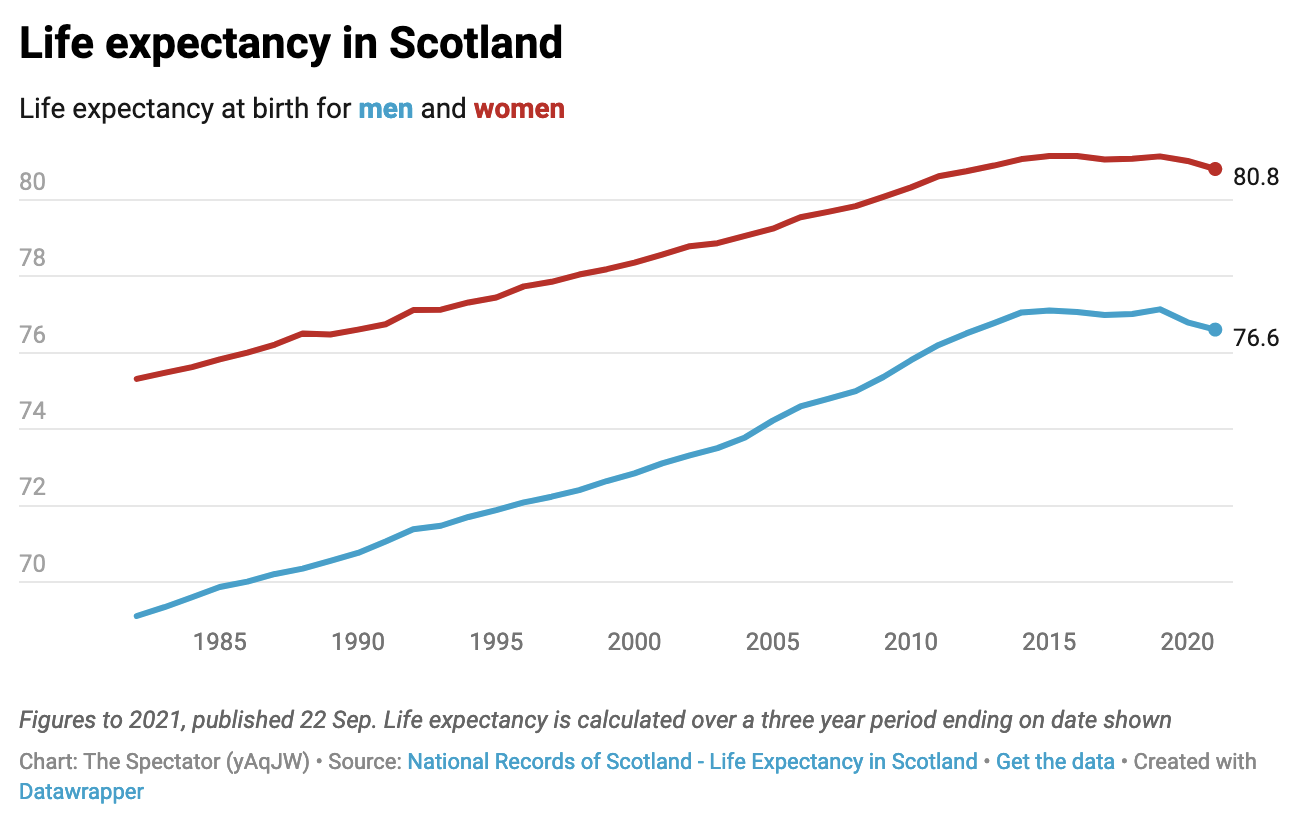 1. Life expectancy for Scots men and women has seen the sharpest fall in 40 years – accelerating in the time Sturgeon’s been in power.