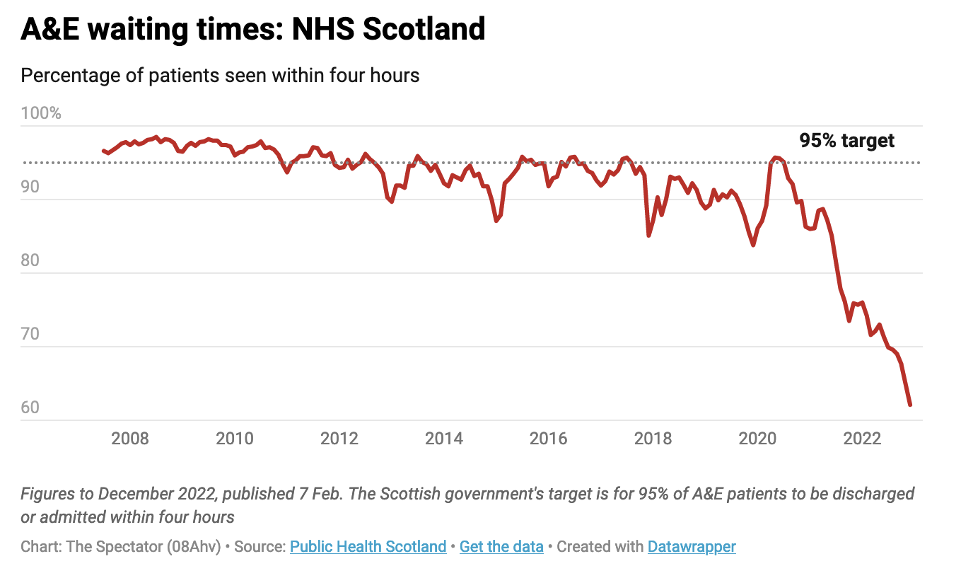 Just 62% of patients were seen within 4 hours of arriving at A&E last month. The target hasn’t been met since July 2020. Frontline doctors have warned the Covid backlog will take years to clear.