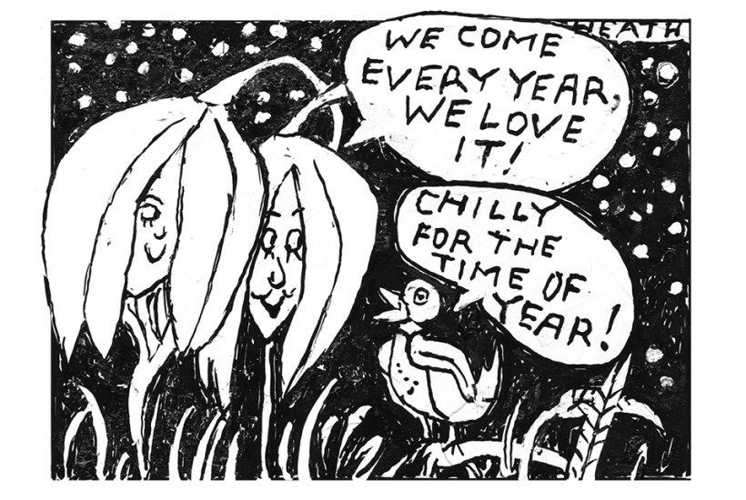 The word ‘galanthophile’ does not quite convey the fanaticism of the true snowdrop lover. These gardeners, blessed with a distinct botanist’s bent, spend the coldest days of the year in each other’s gardens, mainly on their knees, worshipping these diminutive gods with names like ‘Dionysus’, ‘Hippolyta’ and ‘Galadriel’, as well as mortals like ‘Mrs Macnamara’, ‘Lady Beatrix Stanley’ and ‘Bill Bishop’. That’s because only when you get down very low can you properly discern the markings on the inner ring of petals or ‘perianth’, which are often the only means of distinguishing one variety from another.