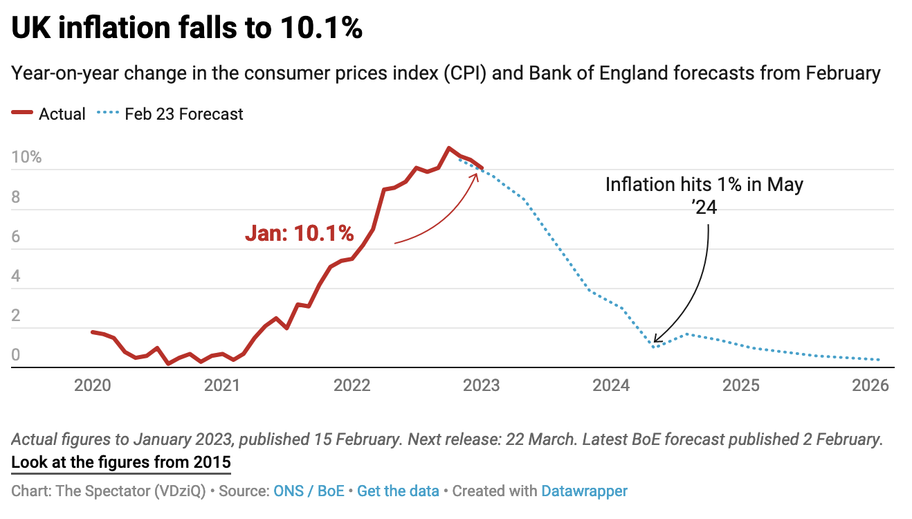 When the inflation date was released today, it did at least record a modest fall. The rate at which prices are rising dropped to 10.1 per cent for January – now a whole percentage point below its peak. That is better than nothing.
