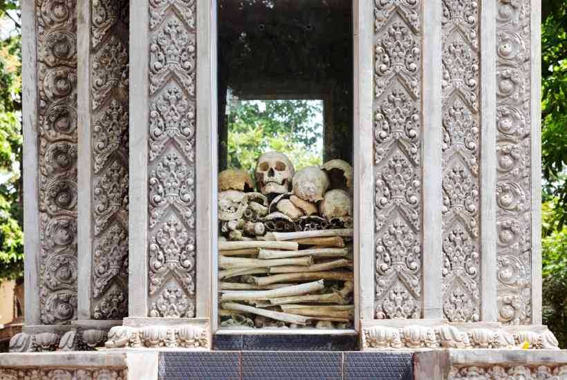 I gazed at the Khmer Rouge’s very last truck. I toured the grim concrete bungalow of Pol Pot’s acolyte, Ta Mok, alias ‘The Butcher’. And eventually I found the last home of Pol Pot himself. It is a suitably ugly redbrick bunker, in a scruffy jungle clearing. I stole a piece of Pol Pot’s patio, as a macabre souvenir (sorry). Then my guide – i.e. a local with a moped, and a bit of English – showed me a spirit house, near Pol Pot’s terminal lair, a kind of shrine to this evil man. Nearby was Pol Pot’s grave, decorated with food, coins, cans of Red Bull. The guide told me that Thais would come across the border, and make offerings to the infamously atheist Pol Pot, in the hope that his spirit would bring them luck in the lottery.