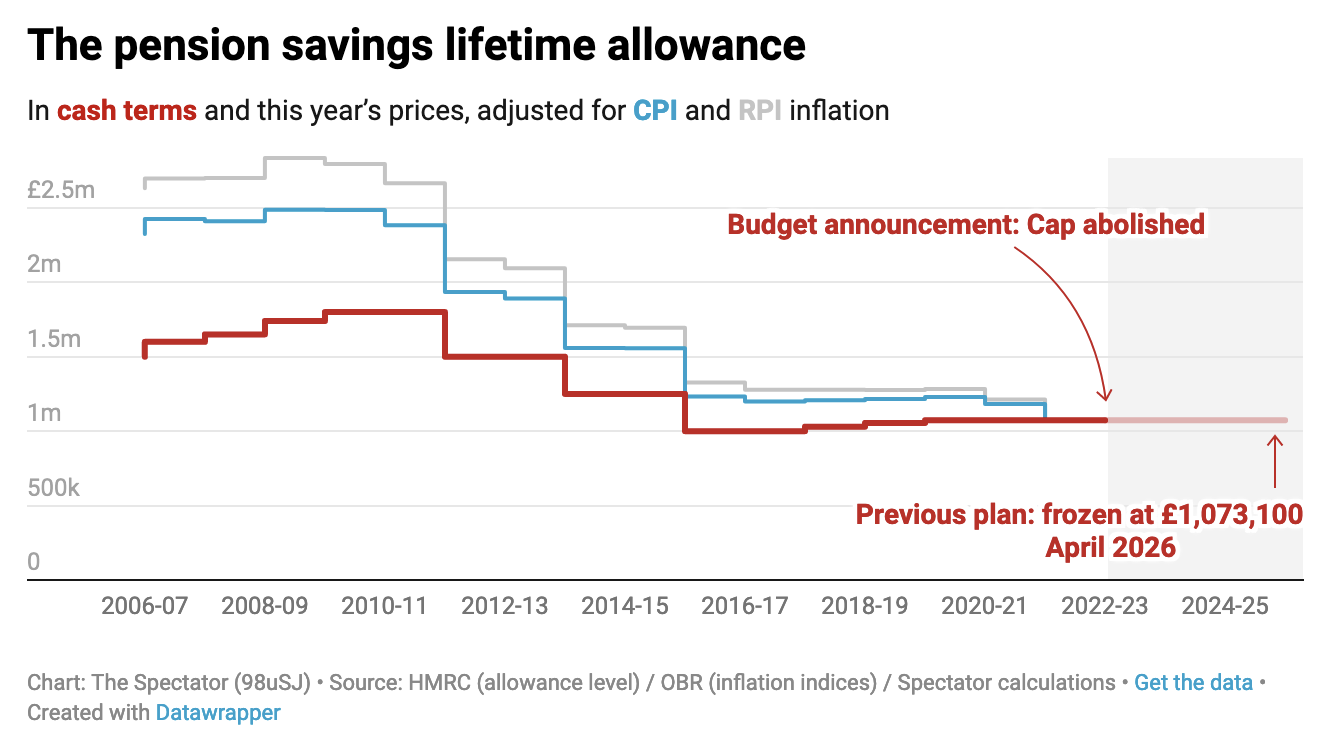 - The pensions Lifetime Allowance of £1 million will be abolished. ‘This stops over 80 per cent of NHS doctors’ from paying pension tax, the Chancellor said.