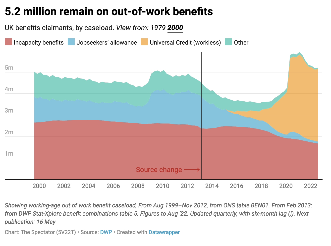 In his Budget speech, Jeremy Hunt made a great play on how Conservatives value work. Tories love talking about this but in fact they have just presided over a catastrophic increase in benefits. Before the pandemic there were 4.2 million on benefits: at the last count, 5.2 million. Given the mass worker shortage, this is quite a scandal. So what is being done to change this?