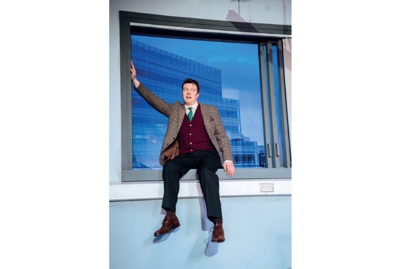 Daniel Rigby is a tour de force as the Maniac, gripping the crowd from the very opening moment. ‘Do you believe in the fourth wall?’ he asks the audience. ‘Too late!’ he cries, flinging his coat into the stalls. Rigby has the explosive, feral energy of Adrian Edmondson, which he tempers with a cool, knowing intelligence and a polished external demeanour. He could be a young Roger Allam. The supporting players are just that, assistants and helpers who enable the comic whirlwind to spin and roar. The script requires the Maniac to take on multiple roles as ringmaster, theatrical director and lead character. And he turns into a Greek chorus when he delivers topical asides and footnotes.