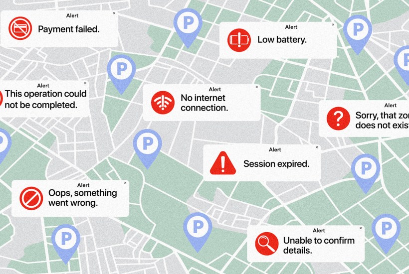 Of course, cash parking meters weren’t perfect. They could chew up your ticket, swallow your change or refuse to dish out change at all (as Bryson wrote: ‘You can’t tell me that a machine that can recognise and reject any foreign coin ever produced couldn’t make change if it wanted to’). But they had nothing on the very particular frustrations that come with ‘smart’ parking apps.