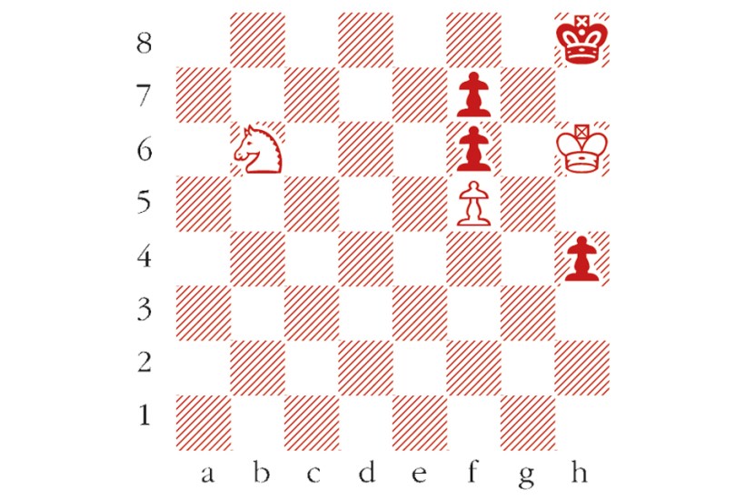 White to play and draw. Composed by A. Lifanov, 2002. The pawn on h4 looks unstoppable, but the draw is still within reach with an accurate sequence. What should White’s first move be? Email answers to chess@spectator.co.uk by Monday 3 April. There is a prize of £20 for the first correct answer out of a hat. Please include a postal address and allow six weeks for prize delivery.